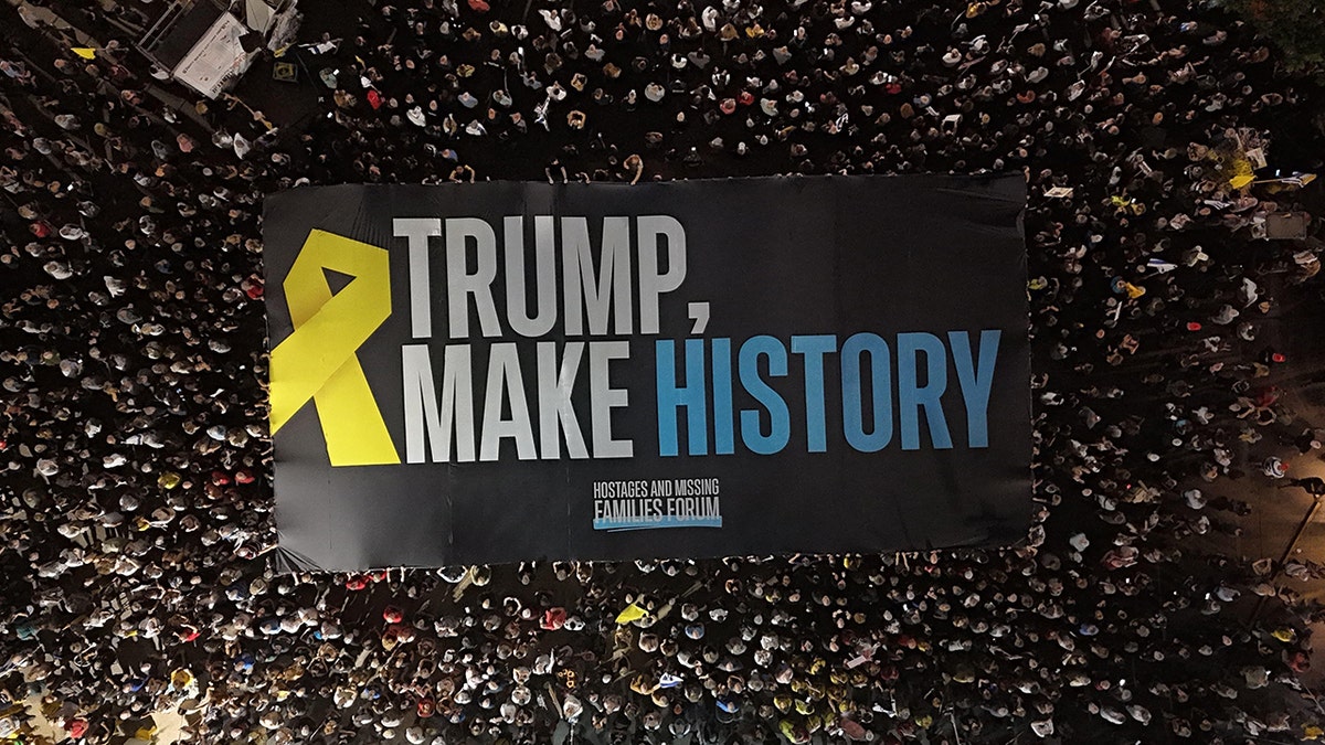 Organizers estimated nearly 100,000 Israelis gathered in Tel Aviv’s Hostages Square to remember them as family members called on the government to make a deal to bring their loved ones home. A giant flag was unveiled calling on President Trump to “Make History.”