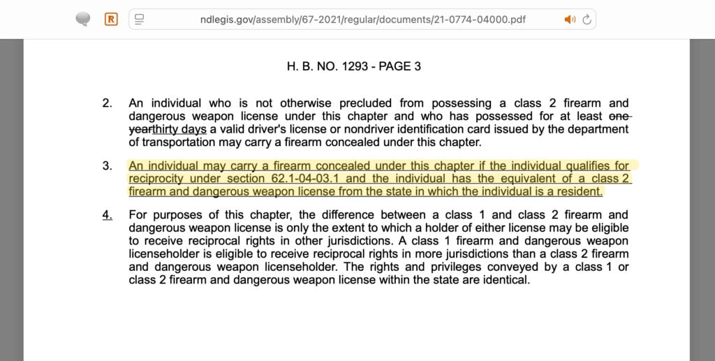 On the North Dakota Attorney General’s official website, the reciprocity section clearly states: