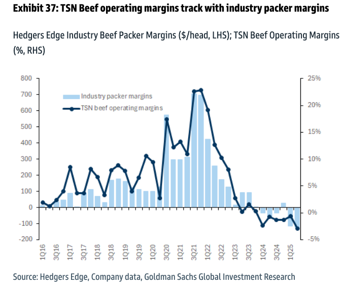 “We also believe the cyclical low in beef profitability is creating an attractive entry point for patient investors in Buy-rated TSN,” the analysts noted.