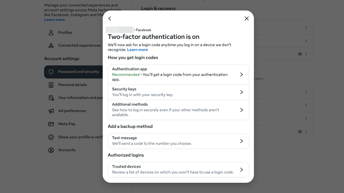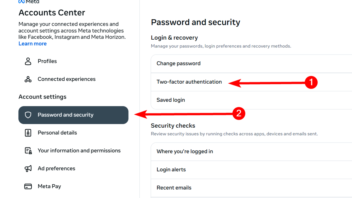 Enable two-factor authentication (2FA) on all your accounts to add an extra layer of security. This means you’ll need both your password and a second form of verification (like a code sent to your phone) to log in. So, even if hackers have your password, it will be useless if they don’t have the second verification factor. You can easily do this on Facebook using the steps below: