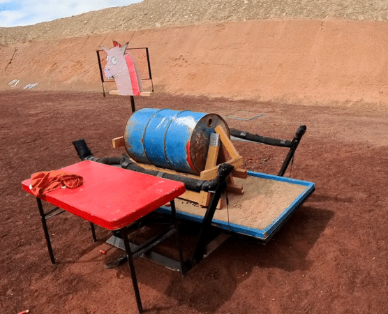Chained to a Kettlebell, dragging a dummy through the desert, with cannibals on your trail. Shooter ready?