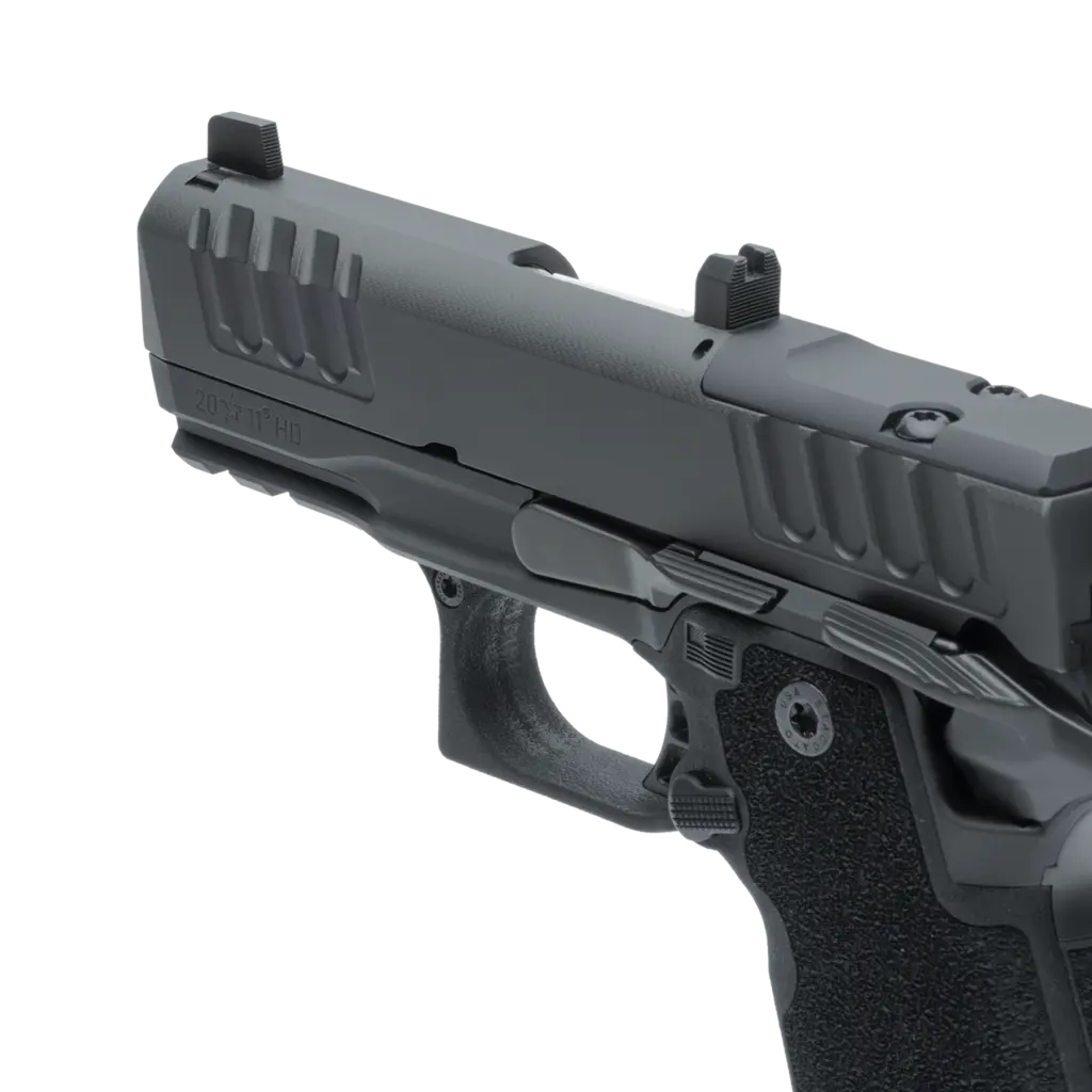 - Controls & safety: fully ambidextrous controls, external extractor, active firing-pin block, and mirrored ergonomics.