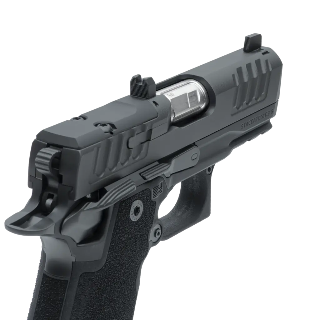- Optic readiness: Staccato’s HOST mounting system (uses spacer plates and longer optic screws for secure attachment).